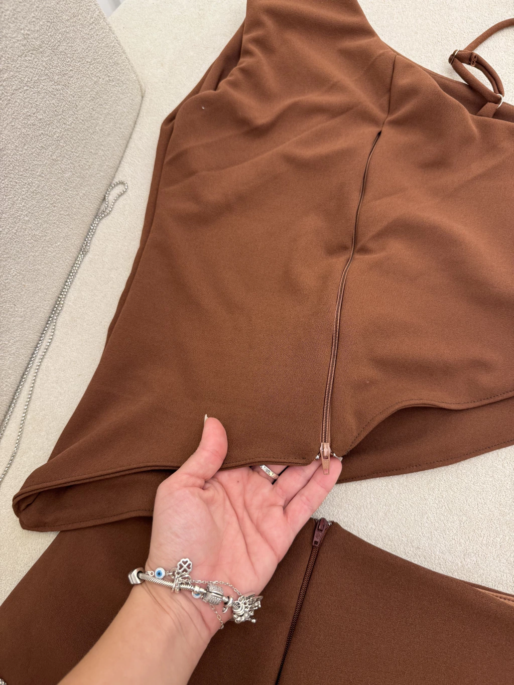 Feita no tecido de scuba,fecho em zíper essa peça combina elegância e estilo em uma única escolha.